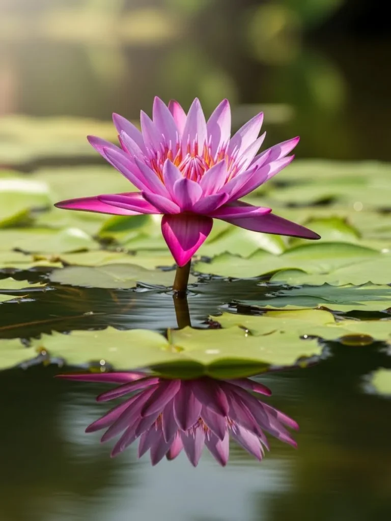 The lotus flower represents spiritual growth, purity, and enlightenment. This wallpaper features a lotus in full bloom, floating peacefully on a calm pond.
