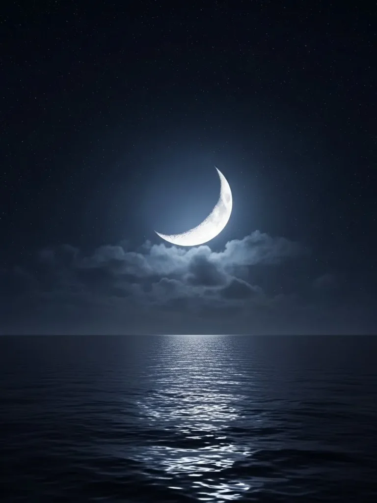 6. “Crescent Moon and Stars Over a Calm Ocean”