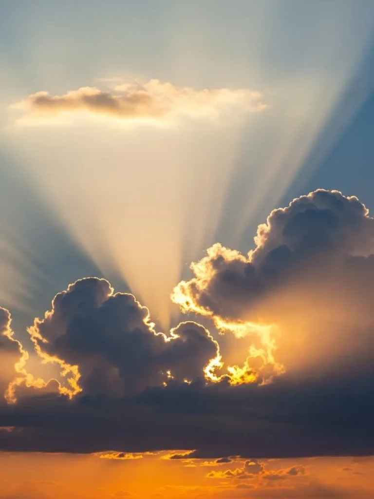 9. “Celestial Sun Rays Breaking Through Clouds”